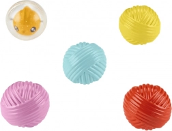 - 4 barevné míčky a jednu chrastící kuličku ideální velikosti pro dětské ručky.