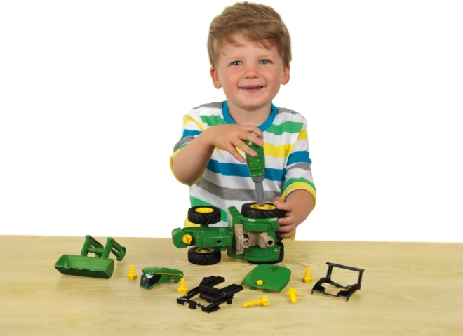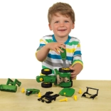 Tento zeleno-žlutý traktor s předním nakladačem potěší malé stavitele možností rozebírání a zpětného sestavení pomocí přiloženého šroubováku. Děti si snadno procvičí logiku, trpělivost a přesnost při manipulaci s díly, koly a šrouby.