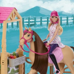 Součástí je panenka Barbie v jezdeckém oblečení, kůň s realistickými detaily a dlouhou měkkou hřívou, stabila s přístřeškem a bohatá sada doplňků pro imaginativní hru. Set je ideální pro děti od 3 let, které milují koně, péči o zvířata a vyprávění vlastních příběhů.