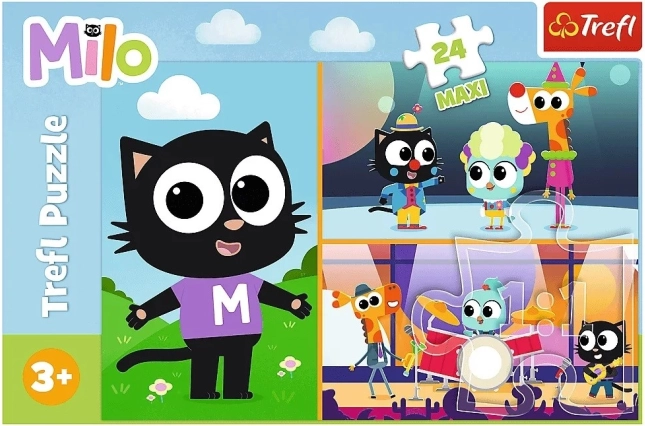 Tato dětská skládačka s motivem oblíbeného koťátka Milo je skvělou volbou pro první puzzle. 24 extra velkých dílků se snadno drží i nejmenším dětem, rozvíjí jemnou motoriku, trpělivost a logické myšlení. Po složení vznikne velký, barevný obraz o rozměru 60 × 40 cm, který si děti zamilují.