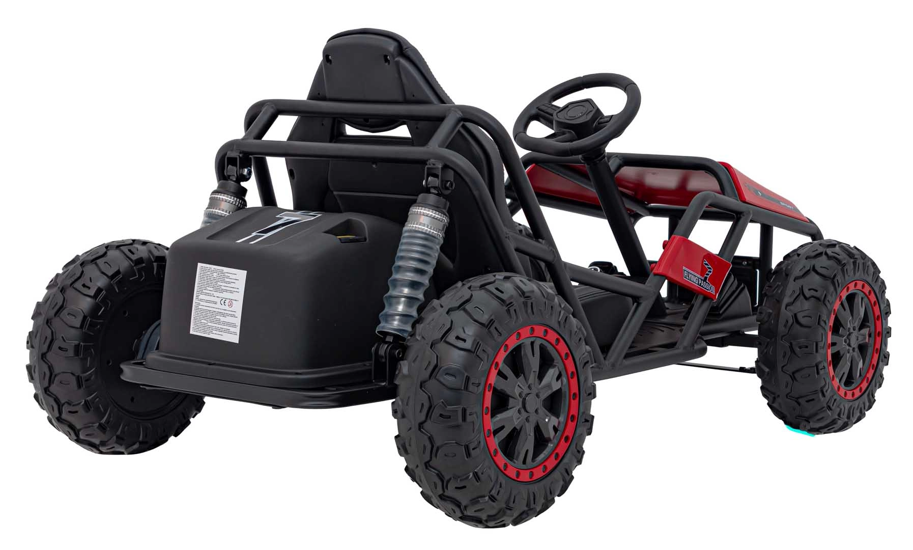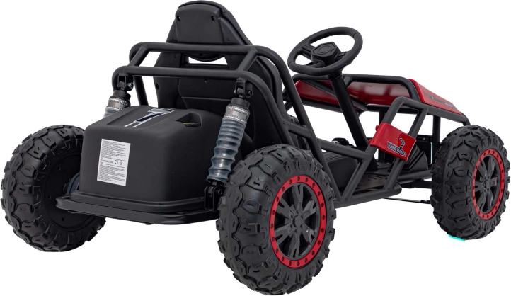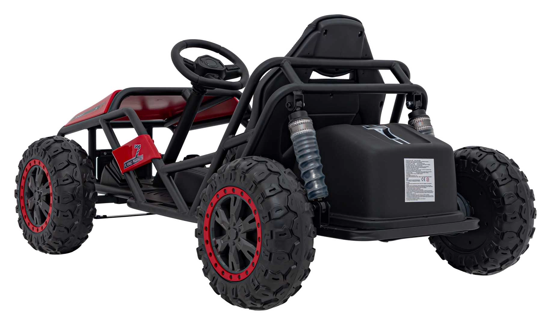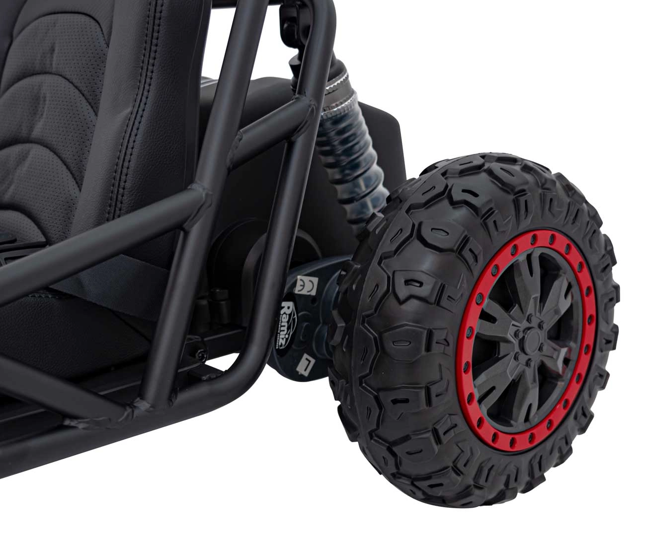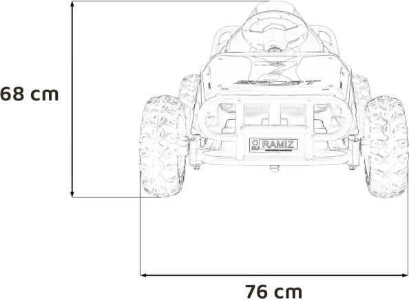 Sportovní dětská motokára RAMIZ je stvořená pro dobrodružství na zahradě i na nezpevněných cestách. Dva výkonné motory 2×100 W napájené 24V 10Ah akumulátorem poskytují jistý tah, plynulý start a možnost volby ze dvou rychlostí. Velká EVA kola 29×11 cm skvěle tlumí nerovnosti, zadní dvojité tlumiče přidávají stabilitu a 15 cm světlá výška umožní hladký průjezd překážkami.