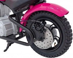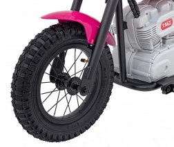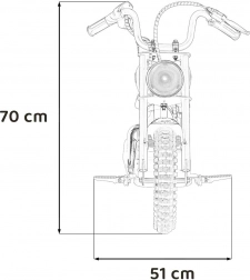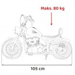 Stylová dětská motorka s realistickým vzhledem a výkonným pohonem nabídne dětem hodiny zábavy i rozvoj koordinace. Disponuje bezúdržbovým bezkartáčovým motorem 250 W, baterií 24 V / 7 Ah, nafukovacími koly 33 × 8 cm, LED předním světlem a měkkým sedlem z ekokůže. Bezpečný plynulý rozjezd, zvonek a ukazatel nabití zvyšují pohodlí i bezpečí při jízdě.