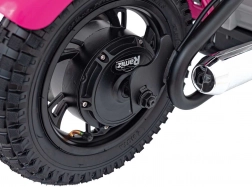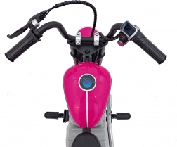 Elektrická motorka pro děti SPEED Power v růžové barvě spojuje atraktivní design chopperu s robustní konstrukcí a pohodlnou výbavou. Díky silnému bezkartáčovému motoru 250 W a baterii 24 V / 7 Ah si malí jezdci užijí plynulou, jistou jízdu, zatímco široká nafukovací kola 33 × 8 cm zajišťují stabilitu na různých površích.