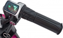 Motorka je vybavena LED předním světlem, ukazatelem stavu baterie a zvonkem. Měkké sedlo z ekokůže s opěrkou poskytuje komfort i při delších vyjížďkách. Plynulý start pomáhá dětem bezpečně vyrazit bez trhavých rozjezdů. Maximální nosnost až 80 kg podtrhuje bytelnou konstrukci.