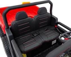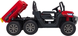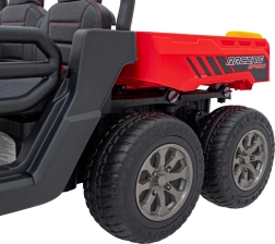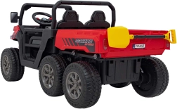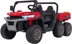 Farmer Truck Speed 900 v zářivě červeném provedení je stabilní a zábavné elektrické auto pro děti s důrazem na bezpečí i pohodlí. Díky šesti velkým kolům a vysoké světlé výšce 16 cm zvládne i nerovný terén, zatímco pěnové pneumatiky EVA zajistí tichý a komfortní provoz. Čtyři motory 45 W dávají vozítku sílu pro plynulý rozjezd i jízdu vpřed/vzad se dvěma rychlostmi.