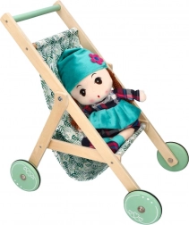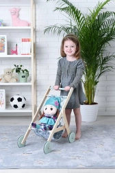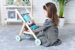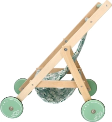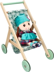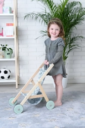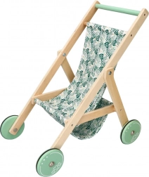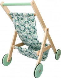Lehký dřevěný kočárek pro panenky propojuje nadčasový přírodní materiál s hravým textilním sedátkem v listovém designu. Hladká madla a tichá kolečka zajišťují pohodlné tlačení po bytě, zatímco odolná konstrukce nabízí jistotu a stabilitu při hře.