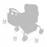 Kočárek je vybaven odnímatelnou taškou, sluneční stříškou, matrací a praktickým košíkem na hračky. Díky kompaktním rozměrům 50 × 35 × 56 cm se snadno skladuje i převáží. Vnitřní rozměr korbičky 40 × 23 cm je ideální pro většinu běžných panenek (panenka není součástí balení).