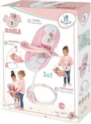 Stylová multifunkční židlička a houpačka pro panenky 3 v 1 z kolekce KOALA přináší dětem realistickou péči o miminko. Díky chytrému systému upevnění se snadno promění v jídelní židličku, houpačku nebo samostatné nosítko. Nabízí odnímatelné oboustranné sedátko s bezpečnostními popruhy, plastový pultík na krmení a lehký, stabilní design pro pohodlnou hru. Ideální pro děti od 3 let.