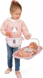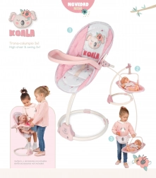 Objevte něžnou kolekci KOALA s moderním španělským designem, kde se snoubí bílá s květinovým potiskem a lososově růžové detaily. Tato 3 v 1 židlička pro panenky roste s představivostí dětí: poslouží jako jídelní židlička, uklidňující houpačka i praktické nosítko pro přenášení oblíbené panenky.