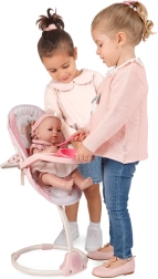 Odnímatelný plastový pultík a sedátko s bezpečnostními popruhy umožní dětem krmit panenku a hrát si pečovatelské hry s maximálním komfortem.