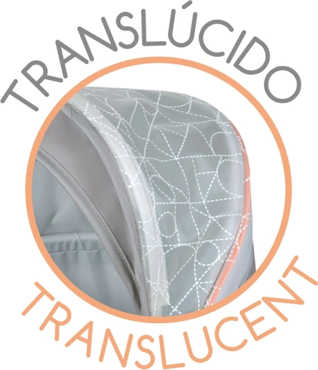 Kombinace kvalitních látek a PVC s potiskem vytváří efekt skleněných ploch. Měděné akcenty dodávají kočárku elegantní, městský vzhled.