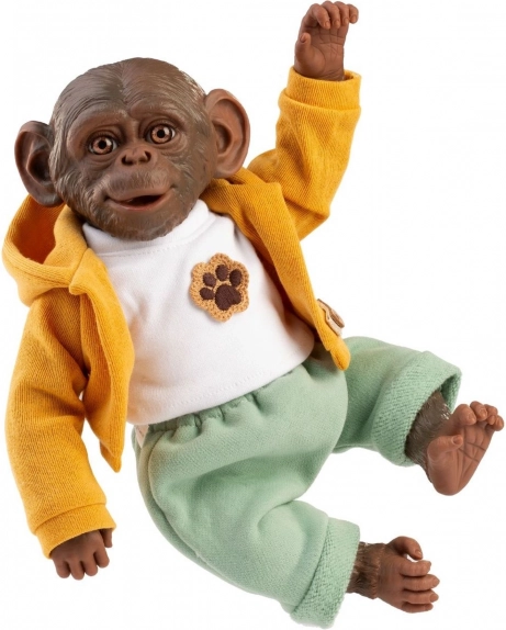 Opička je oblečena ve stylovém žlutém svetru a poněkud s řádně realistickými rysy obličeje, které dodávají dojem skutečné opice.