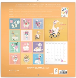 Poznámkový kalendář pro rok 2025 s ilustracemi lam v různých situacích přináší široké možnosti organizace a zábavy.