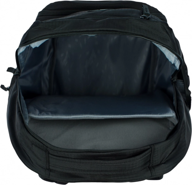 Batoh Coolmate Black má ergonomicky tvarovaná záda a polstrované popruhy pro pohodlné nošení. Obsahuje reflexní prvky.