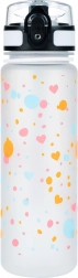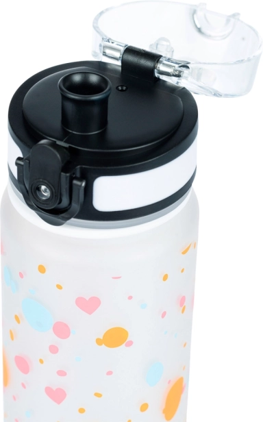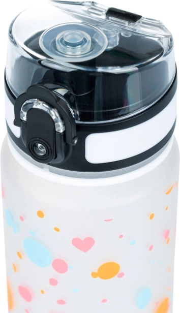 Stylová tritanová láhev o objemu 500 ml s motivem srdíček je ideální do školy, na sport i výlety. Nabízí nepropustné uzamykatelné víčko, praktické poutko na nošení a vnitřní sítko pro ovoce či čaj. Vyrobena z bezpečného tritanu bez BPA, bez zápachu a vhodná i pro horké nápoje.