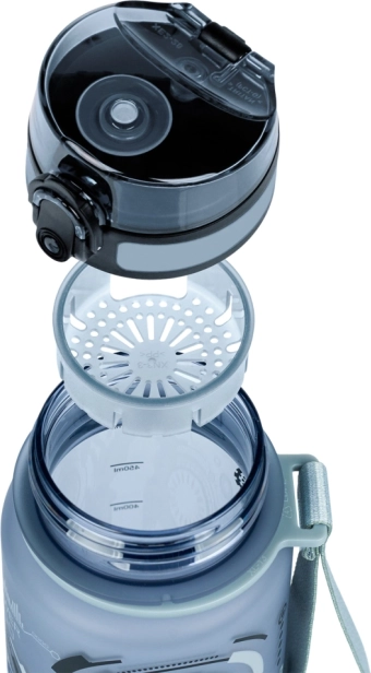 Vybavena je praktickým uzamykatelným víčkem a sítkem, což umožňuje použití pro různé druhy nápojů, včetně limonád s ovocem nebo čajů. Díky připevněnému poutku je nošení láhve velmi pohodlné. Láhev aktivně přispívá k ochraně životního prostředí omezením plastového odpadu.