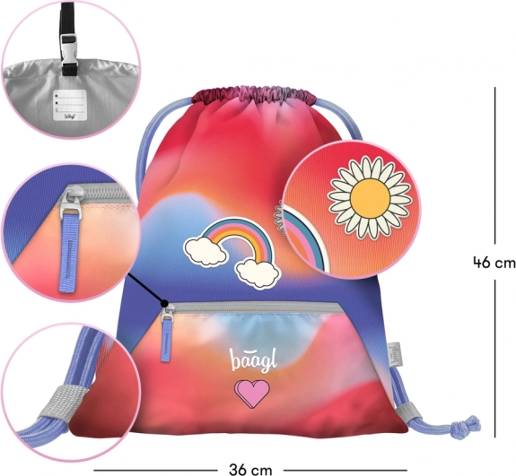 Školní sada BAAGL Airy Duha zahrnuje stylový a ultralehký batoh, který je vhodný pro děti od první třídy základní školy. Batoh se pyšní ergonomicky tvarovanými zády s AIRFLOW ERGO SYSTÉMEM pro maximální prodyšnost. Ramenní popruhy jsou plně nastavitelné, což zajišťuje individuální přizpůsobení každé postavě.
