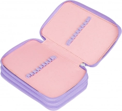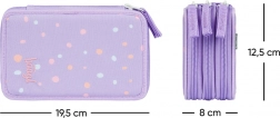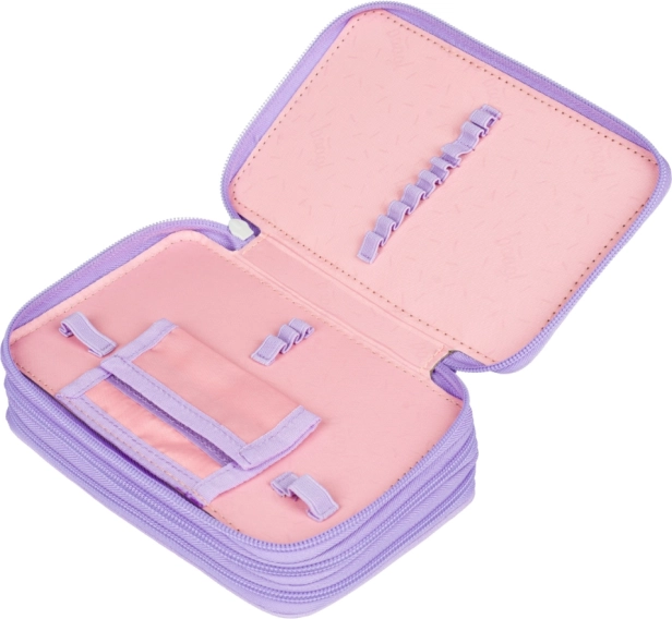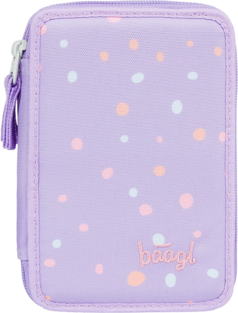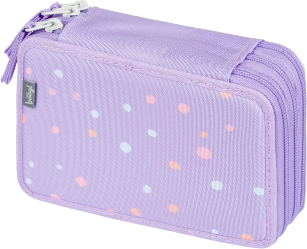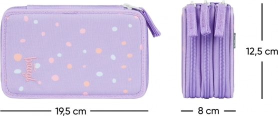 Důmyslné gumičky jsou navržené tak, aby pohodlně pojmuly i silnější pastelky a fixy. Penál je vyroben z odolného textilního materiálu a díky hravému puntíkovému designu ve fialových tónech skvěle doplní každý školní set. Dodává se bez náplně, takže si jej přizpůsobíte přesně podle sebe.