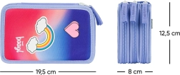 Rozměry 19,5 × 12,5 cm se snadno vejdou do aktovky i batohu, přesto penál nabídne velkou kapacitu díky promyšlenému třípatrovému řešení.