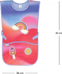 Praktické detaily, jako jsou dvě prostorné kapsy, nastavitelný krční popruh a zavazování v pase, zajišťují pohodlné nošení. Omyvatelný materiál se snadno čistí po každém dobrodružství s barvami či těstem.