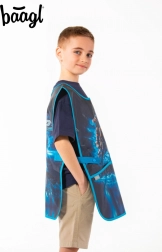 Boční popruhy umožní přizpůsobení postavy dítěte. Rozměr 61 × 36 cm kryje oblečení při malování, vaření i kutilských činnostech.