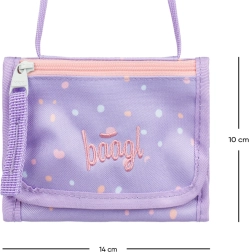 Promyšlené členění se zapínáním na suchý zip a vnitřní zipovou kapsičkou na mince udrží hotovost, karty i klíče přehledně a v bezpečí. Stylový fialový design s puntíky a decentním logem dodává peněžence moderní vzhled, který skvěle ladí se školní i volnočasovou výbavou.