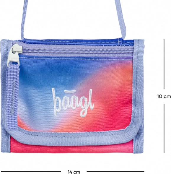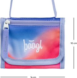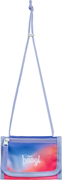 Praktická a stylová peněženka Baagl na krk v červeném duhovém designu je ideální pro děti i teenagery. Nabízí pevný a odolný materiál, praktickou šňůru na zavěšení a bezpečné uzavírání na suchý zip, doplněné o kapsičku na drobné na zip.