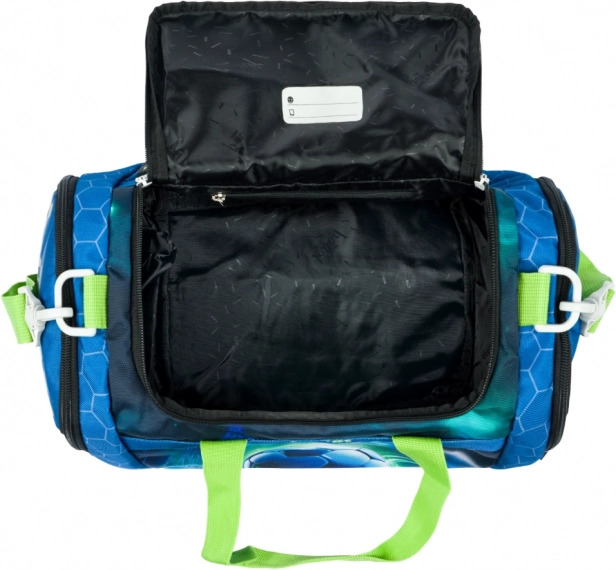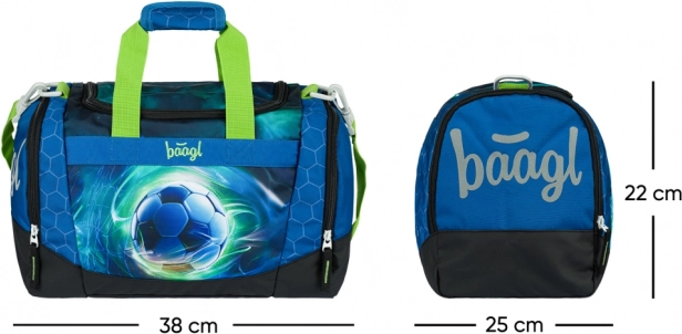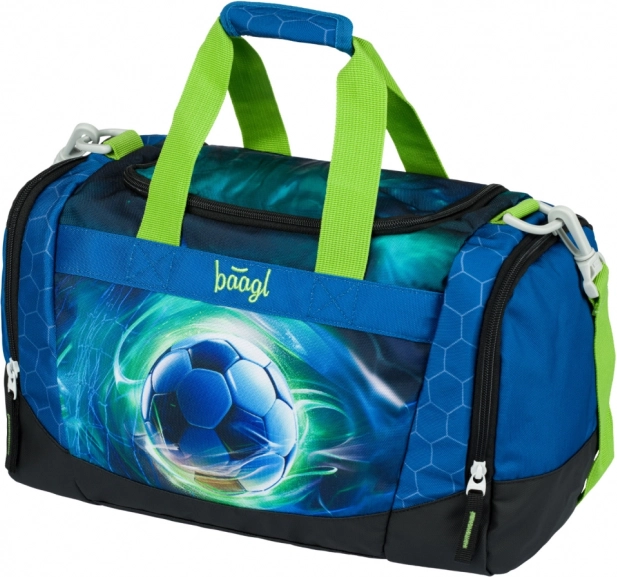 Lehká a praktická dětská sportovní taška BAAGL s motivem fotbalového míče je ideální na kroužky i jako příruční zavazadlo. Nabízí prostornou hlavní komoru se širokým víkem, samostatnou kapsu na obuv, odnímatelný nastavitelný popruh a vyztužené voděodolné dno. Pro bezpečnost dětí nechybí reflexní prvky a spolehlivé zipy YKK.