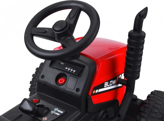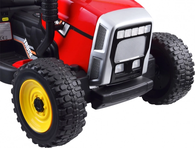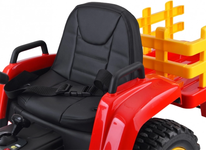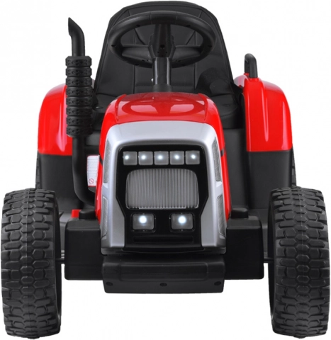 Dětský jezditelný traktor na baterii s odpojitelným přívěsem nabízí světelné a zvukové efekty, hudební panel, plynulý rozjezd a dálkové ovládání pro rodiče. Pohodlné sedadlo z eko kůže, robustní kola a dva výkonné motory zajistí bezpečnou a zábavnou jízdu doma i venku.