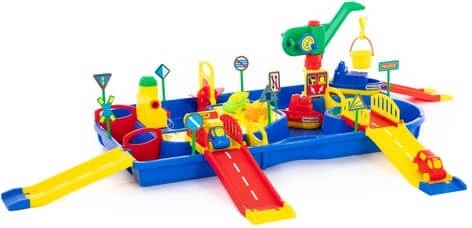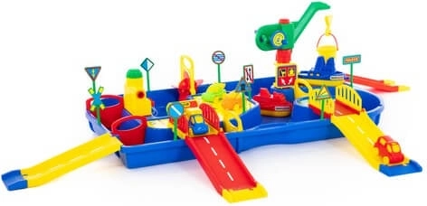Objevte zábavu s vodním setem Vodní svět Malý kapitán, který dětem nabídne rozsáhlou síť kanálů, funkční mlýn, přístavní jeřáb, mosty a zábrany pro regulaci toku vody. Součástí jsou 2 loďky a 4 autíčka, se kterými mohou malí kapitáni tvořit vlastní přístavní příběhy. Hra rozvíjí kreativitu, logické myšlení a jemnou motoriku a je ideální na zahradu, pískoviště i k vodě.