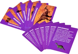 - Vzdělávací karty s dinosaury jako T. rex, Stegosaurus nebo Diplodocus