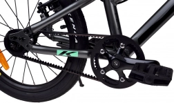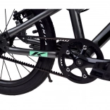 Rám z Alu 6061 s dětskou geometrií zajišťuje nízkou hmotnost, stabilitu a snadnou ovladatelnost pro mladé jezdce.