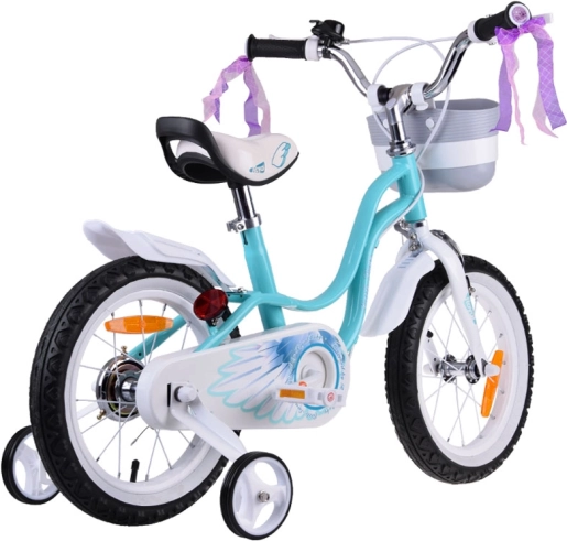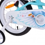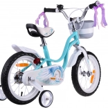 Lehké a bezpečné dětské kolo ROYALBABY Little Swan 14" v elegantní tyrkysové barvě se třpytivým efektem potěší malé cyklistky. Nabízí stabilitu díky postranním kolečkům, účinné přední a zadní brzdy, pohodlné nastavitelné sedlo s úchytem a roztomilé detaily jako košík a stuhy na řídítkách pro radost z každé jízdy.