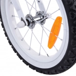 Široké 14" pneumatiky 2,125 s protiskluzovým vzorkem, postranní kolečka a měkké nastavitelné sedlo zajišťují stabilní a komfortní jízdu.