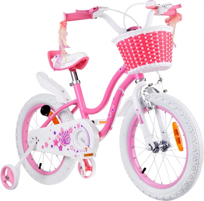 ROYALBABY Star Girl 16" kombinuje bezpečnost, pohodlí a hravý design. Ocelový rám, 16" nafukovací kola a kvalitní ložiska zajišťují komfortní a stabilní jízdu. Díky pomocným kolečkům se děti snadno naučí držet rovnováhu, zatímco plná krytka řetězu chrání před zašpiněním i poraněním.