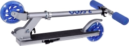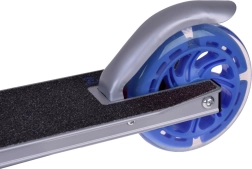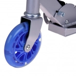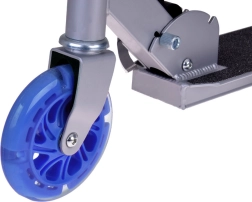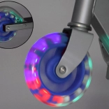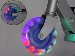 Tato dětská koloběžka kombinuje lehkost, skládací konstrukci a bezpečné provedení. Svítící LED kola zvyšují viditelnost a atraktivitu při jízdě, bez potřeby baterií – diody se napájí energií generovanou během otáčení kol.