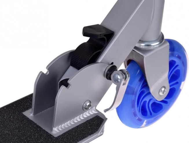 Lehká a odolná skládací koloběžka pro děti s LED svítícími koly, nastavitelnou výškou řídítek a protiskluzovou deskou. Ideální pro zábavu i bezpečný pohyb venku, snadno se skládá a přenáší, má nožní brzdu a praktický stojánek.