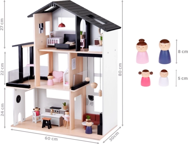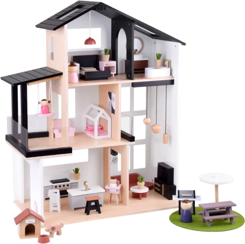 Hledáte dokonalý domeček pro panenky, který rozvíjí kreativitu vašich dětí? Tento moderní dřevěný domeček ve stylu Loft je tím pravým řešením. Vyroben z kvalitního dřeva s důrazem na detail, domeček zahrnuje nejen elegantní obývací pokoj, moderní kuchyň a útulnou ložnici, ale i funkční koupelnu a balkon.