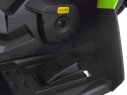 Dva motory 200 W poskytují dostatek síly pro jízdu po trávě i lehkém terénu. Plynulý rozjezd a elektrická brzda po uvolnění pedálu zvyšují bezpečnost.