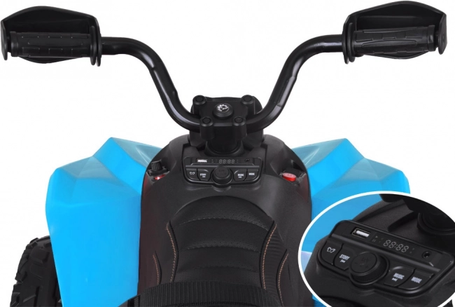 Ovládání je snadné: start probíhá tlačítkem, rozjezd je plynulý a po uvolnění pedálu se aktivuje elektrická brzda. Na přehledném panelu přepnete vpřed/stop/vzad a samostatně ovládáte osvětlení. Integrovaný hudební modul nabízí předinstalované melodie, USB, MP3 i FM rádio, takže si malý jezdec může užít jízdu s oblíbenou hudbou.
