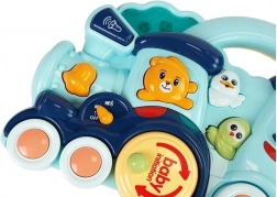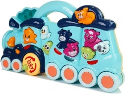 Tato barevná dětská lokomotiva je navržena tak, aby podporovala přirozený rozvoj dítěte už od 12 měsíců. Stiskem jednotlivých tlačítek zazní různé odgłosy zvířat (kočka, kravička, ovečka, pejsek, prasátko, koník a ptáčci), což napomáhá rozlišování zvuků, barev a tvarů a podněcuje fantazii a smyslové vnímání.