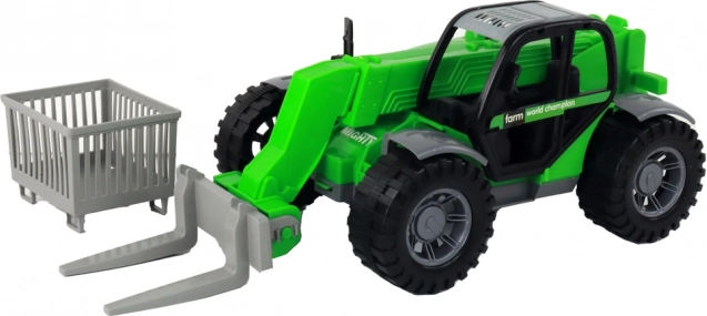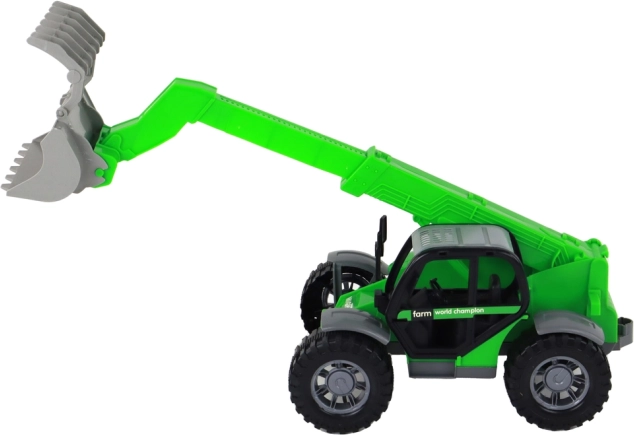 Součástí balení jsou tři snadno vyměnitelné nástavce: vidle na balíky a materiál, transportní koš a úchop na dřevo či větve. Frikční pohon umožní jednoduché uvedení do pohybu – stačí popostrčit a vyrazit. Hra se stavební a zemědělskou technikou podporuje jemnou motoriku, koordinaci i kreativní myšlení.