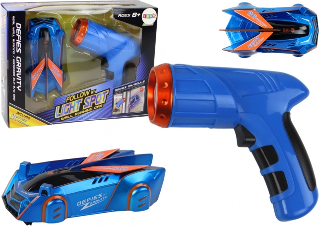 S modrým autíčkem, které kombinuje fascinující design s revoluční technologií, přenesete hru na zcela novou úroveň. Je schopno jezdit po stěnách a stropech, čímž překonává gravitaci. Ovládání probíhá prostřednictvím laseru - jednoduše směřujte LED světlo ve vámi zvoleném směru a auto se tam hned vydá.