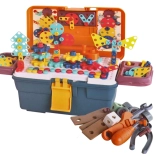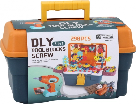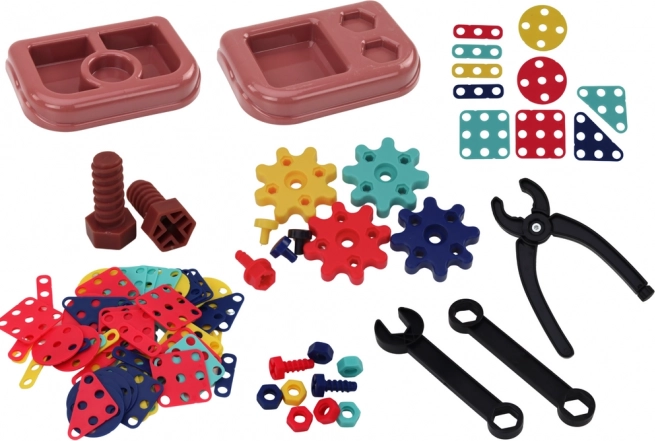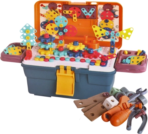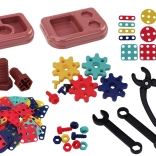 Stavebnicový set zahrnuje množství nástrojů jako klíče a kleště. Pomáhá s rozvojem jemné motoriky.
