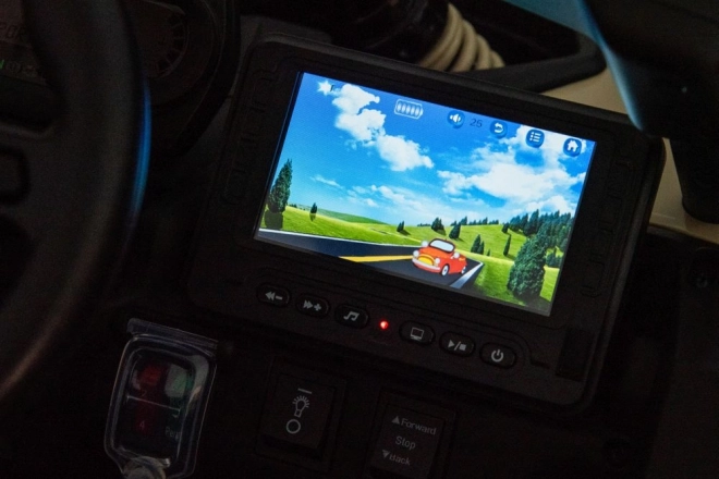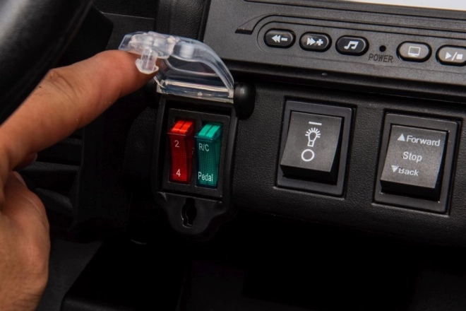 Přehledný panel s režimy R/C a Pedal, směry jízdy a světly usnadňuje ovládání a zvyšuje bezpečnost při první jízdě.