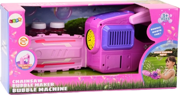 Zábavná dětská mašinka na bubliny ve tvaru motorové pily v růžové barvě vytváří spoustu magických bublin na jedno stisknutí. Ergonomické držadlo pro bezpečné a pohodlné uchopení, balení obsahuje 2 lahvičky náplně. Certifikace CE a shoda s EN71. Napájení 4× AA (nejsou součástí).