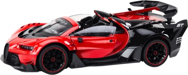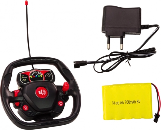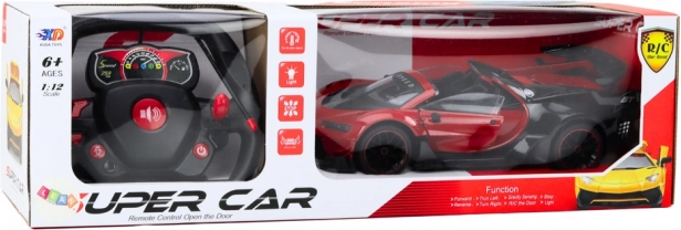Objevte zábavu na plný plyn s červeným RC sportovním autem v měřítku 1:12. Realistický vzhled, precizní zpracování a interaktivní funkce jako otevírání dveří a kufru poskytují autentický pocit z řízení. Ovladač ve tvaru volantu na frekvenci 27 Hz umožňuje intuitivní ovládání, zatímco světla a zvuky umocňují atmosféru jízdy.