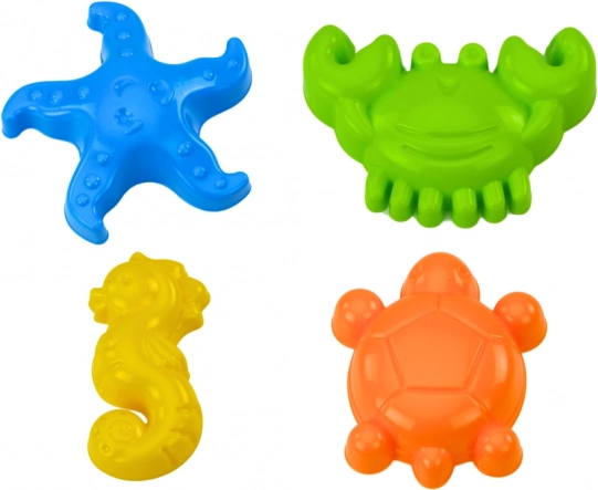 Čtyři formičky ve tvaru mořských tvorů umožňují dětem vytvářet rozmanité pískové sochy a zároveň se učit o mořském životě.