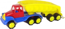 Velký žlutý nákladní vůz s přívěsem je hračkou, která rozvíjí dětskou kreativitu a zábavu. Díky své délce a otočnému přívěsu umožňuje širokou škálu herních scénářů.