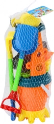Mlýnek se sítem a nálevkou, lopatka, hrábě, konevka, 4 formičky (slon, želva, hvězdice, palma)